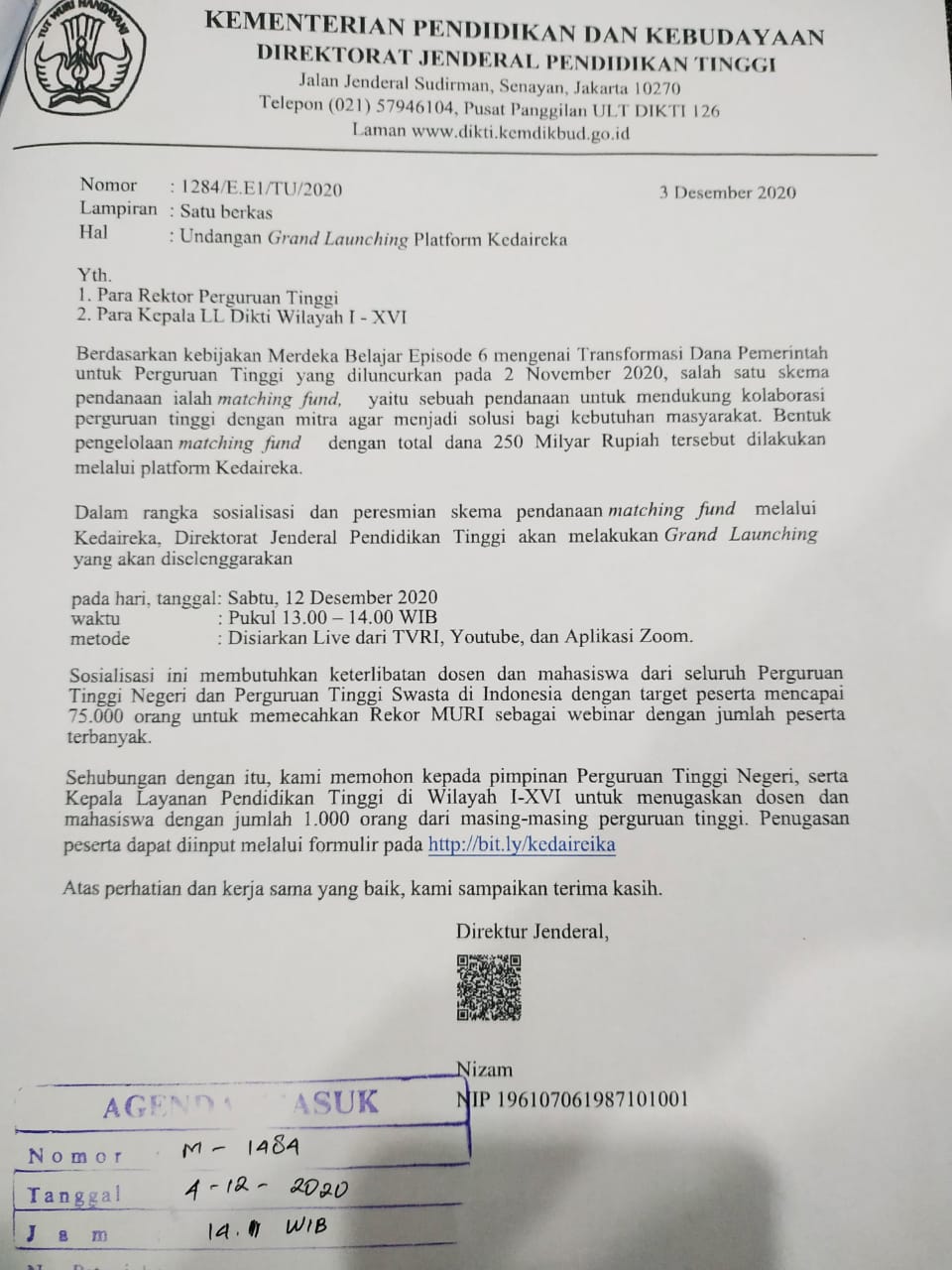 Surat Edaran Nomor SE/07/UN63/TU/2020